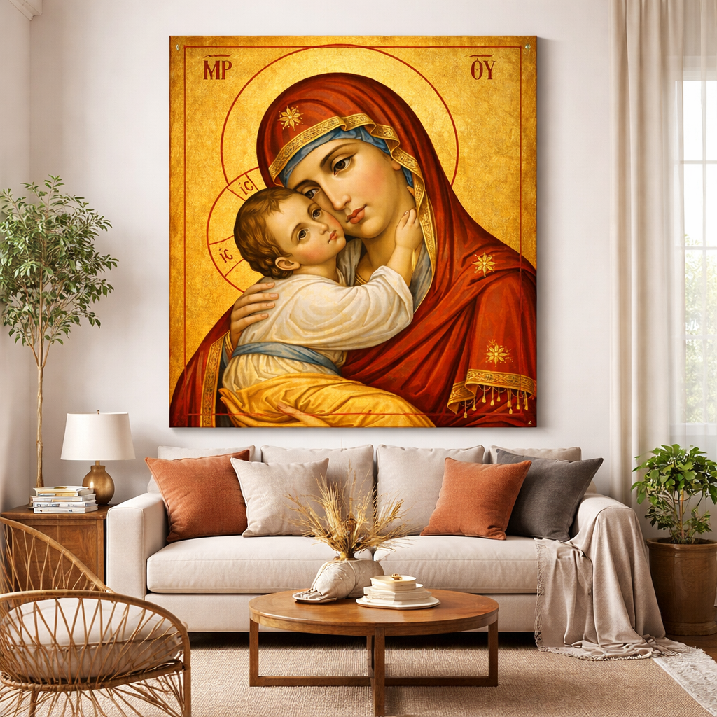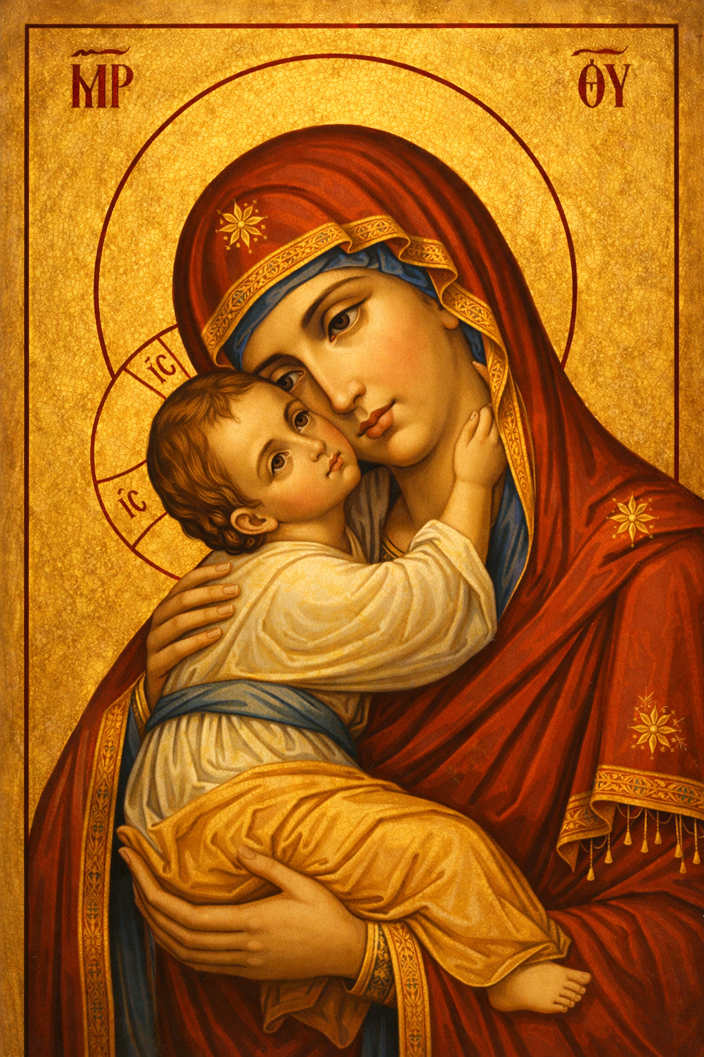 Icoana pe panza - Maica Domnului Eleusa (a Îndurării / Dulcea Sărutare)