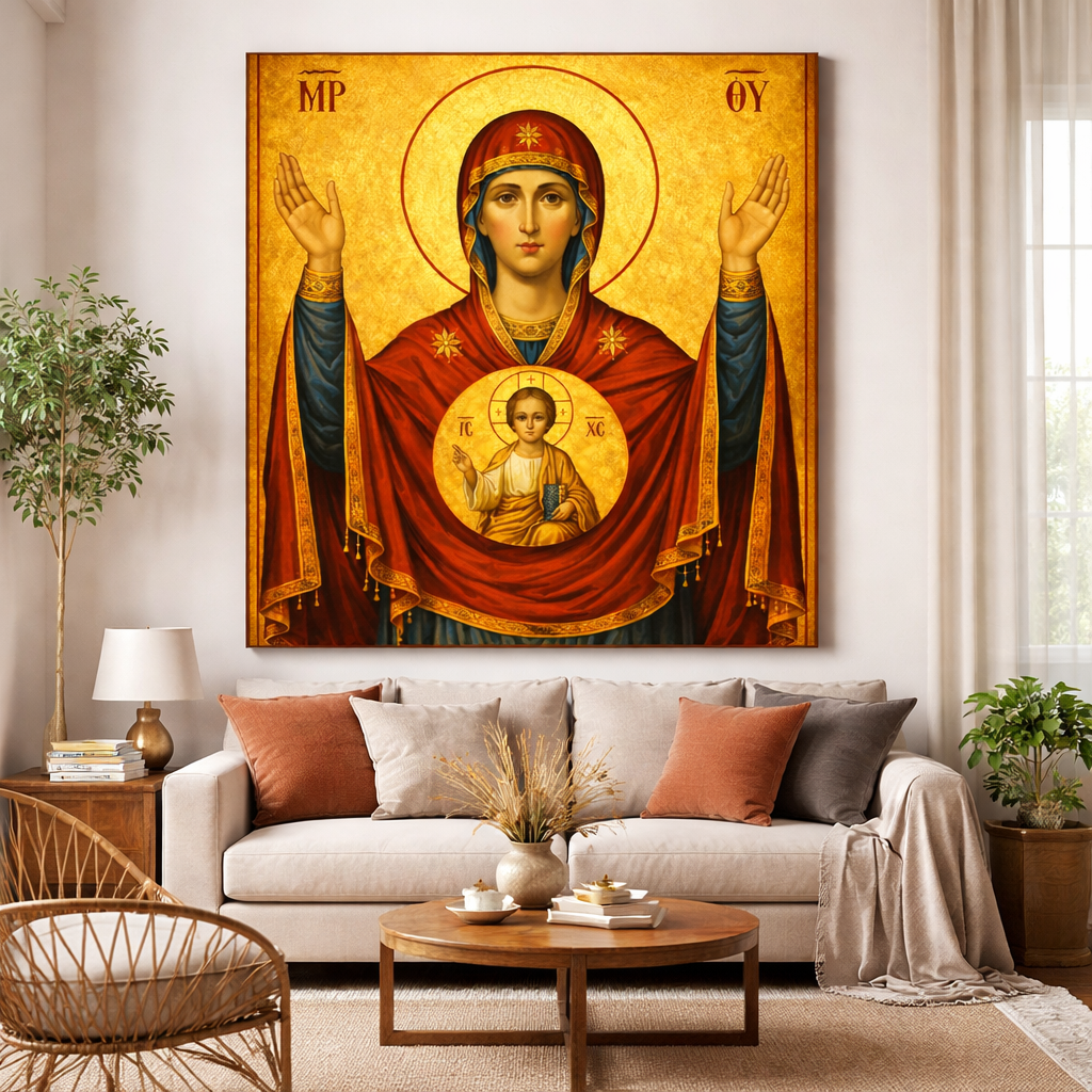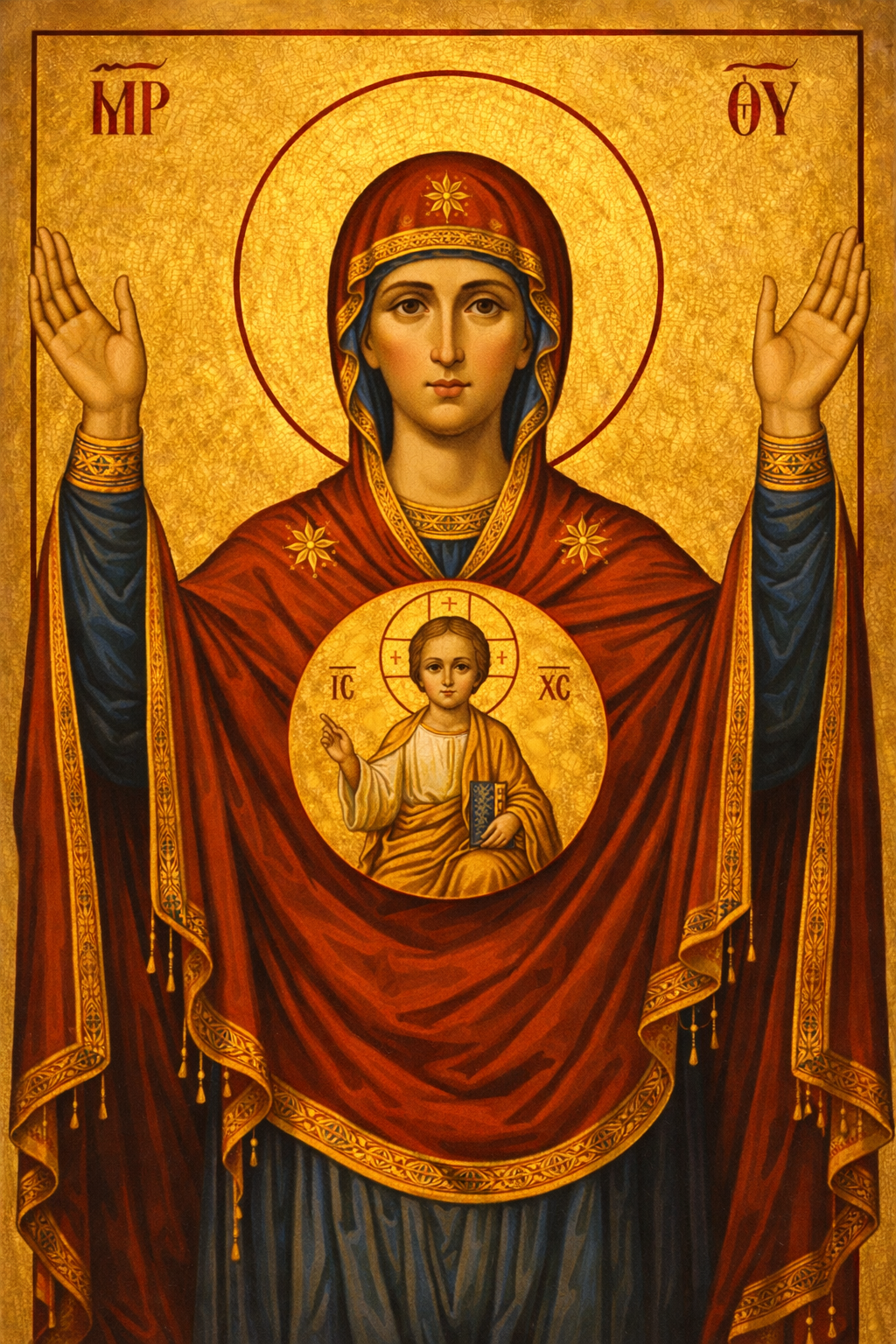 Icoana pe panza - Maica Domnului Oranta (Rugătoarea)
