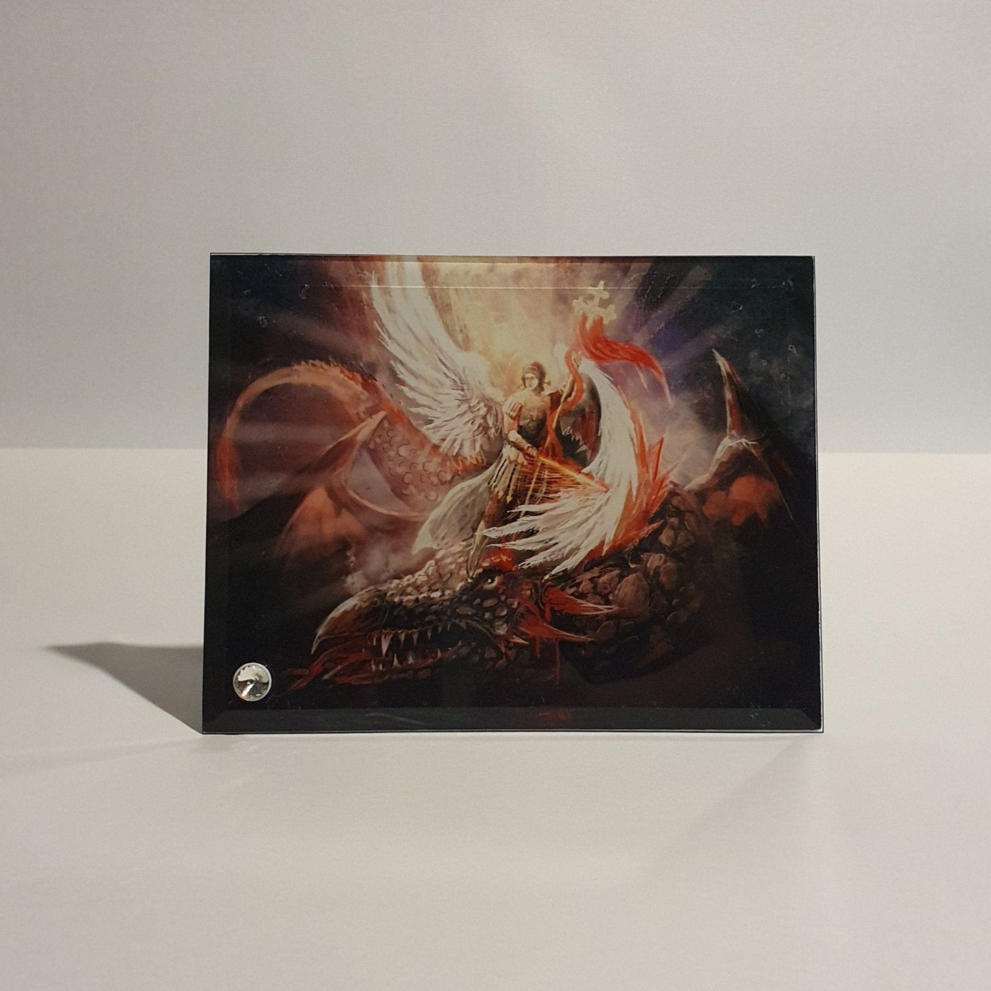 Icoana pe sticla - Sfantul Arhanghel Mihail ucigand dragonul