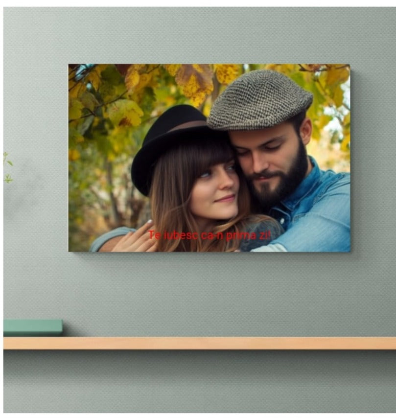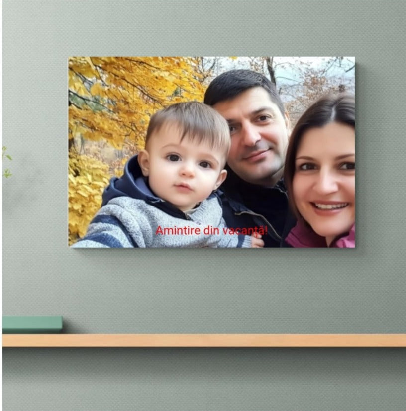 Tablou personalizat cu poza ta si text suprapus (optional), tip peisaj