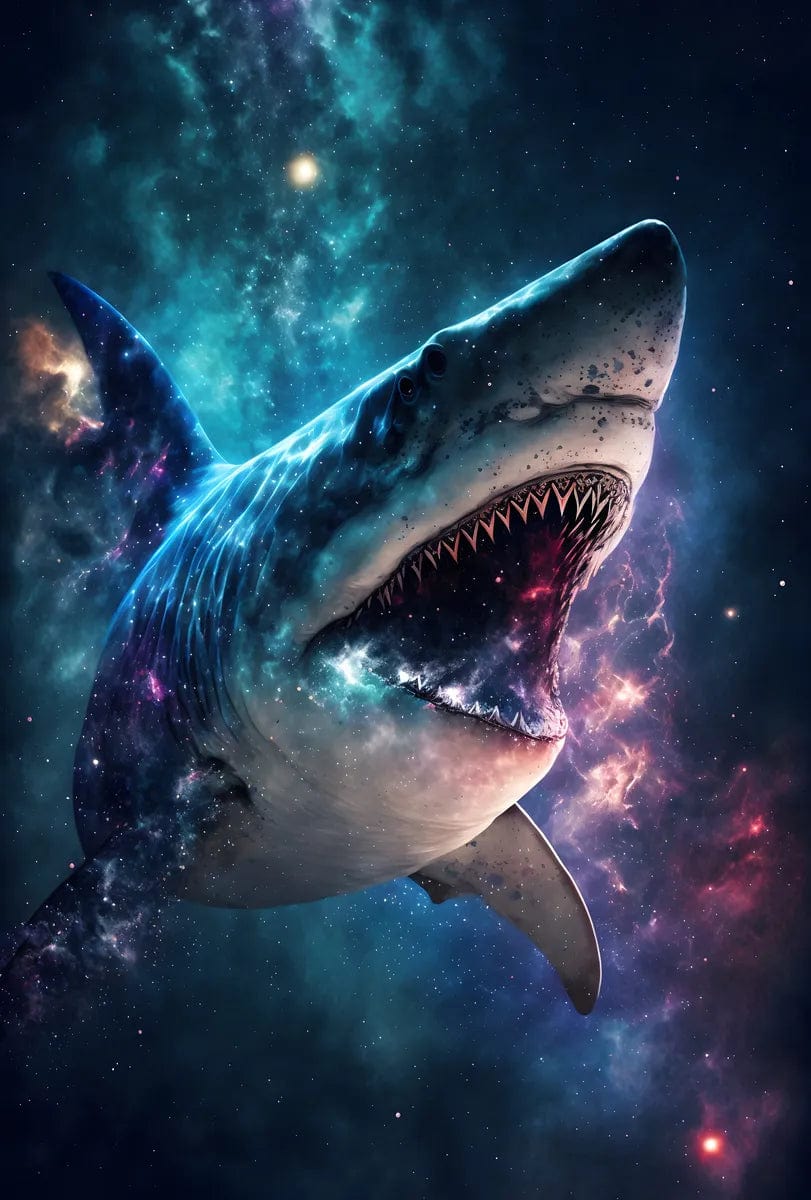 Tapet textil pentru camera copilului "Rechinul alb in spatiu" - 1,5 X 2,2 m